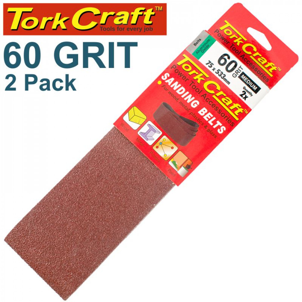SANDING BELT 75 X 533MM 60GRIT 2/PACK
