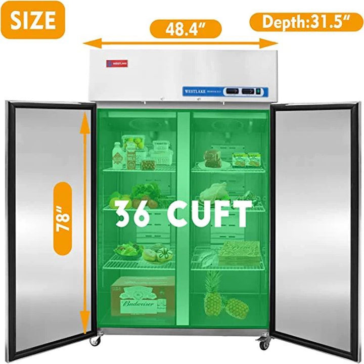 SABA 54 in. W 47 cu. ft. Two Door Commercial Reach In Upright Refrigerator in Stainless Steel S