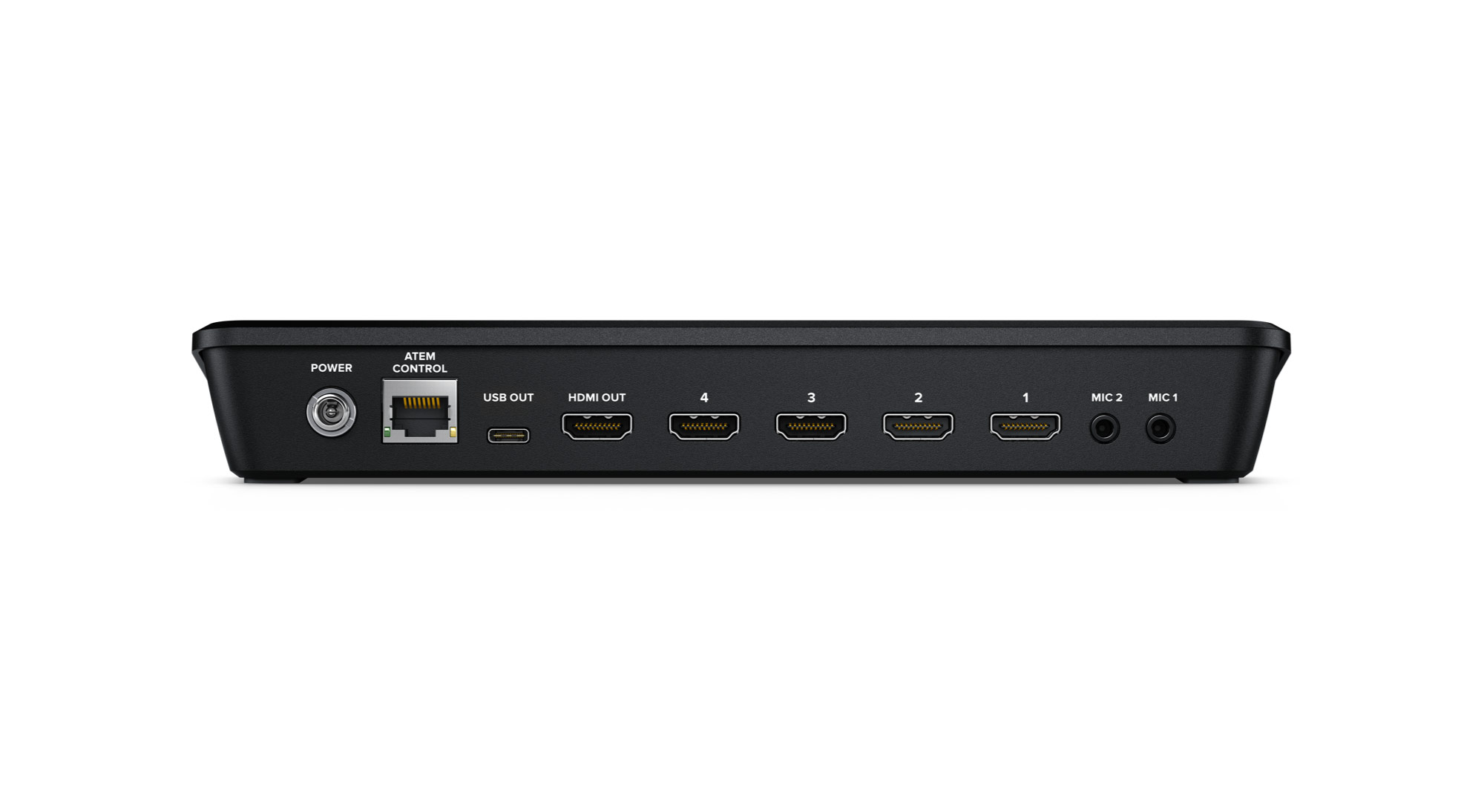 8-in/2-out Video Production Studio with Livestream via Ethernet Hardware, Video Switcher, DVE, Audio Mixer, Individual Input Recording, 2 HDMI Outputs, 2 Mic Inputs, and USB-C Compatability. Write your review Item ID: ATEMMiniEI. $ 1,295 .00. Or pay $215.83 for 6 months with Easy Pay.