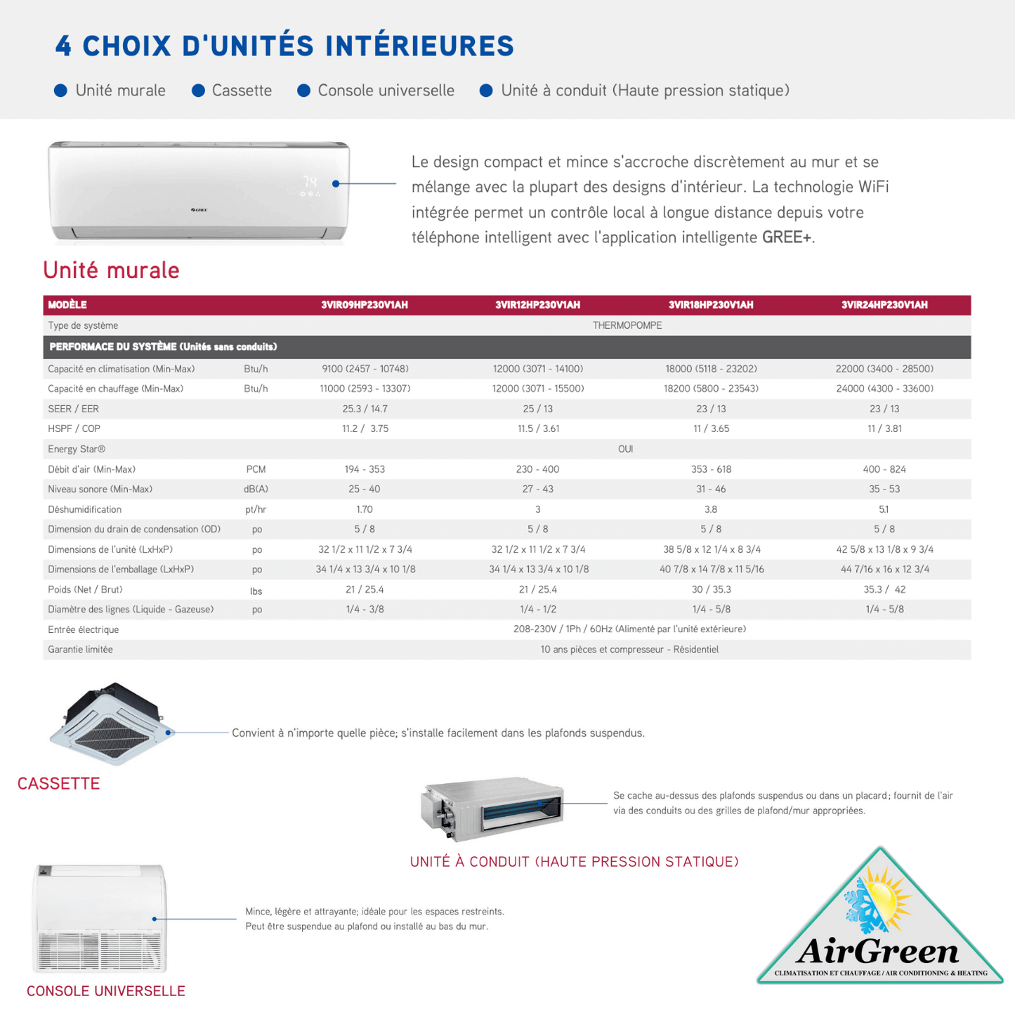 Gree Vireo Gen3. Garantie: Garantie 12 ans. Disponibilité: En Stock. Thermopompe Energy Star abordable qui chauffe jusqu'à -30°C. Choississez une des 4 options de module intérieur.. Brochure Gree Vireo Gen3; Guide télécommande Vireo Gen3; Manuel de l'utilisateur; Manuel d'installation; Certificat de garantie 12 ans - installation à.