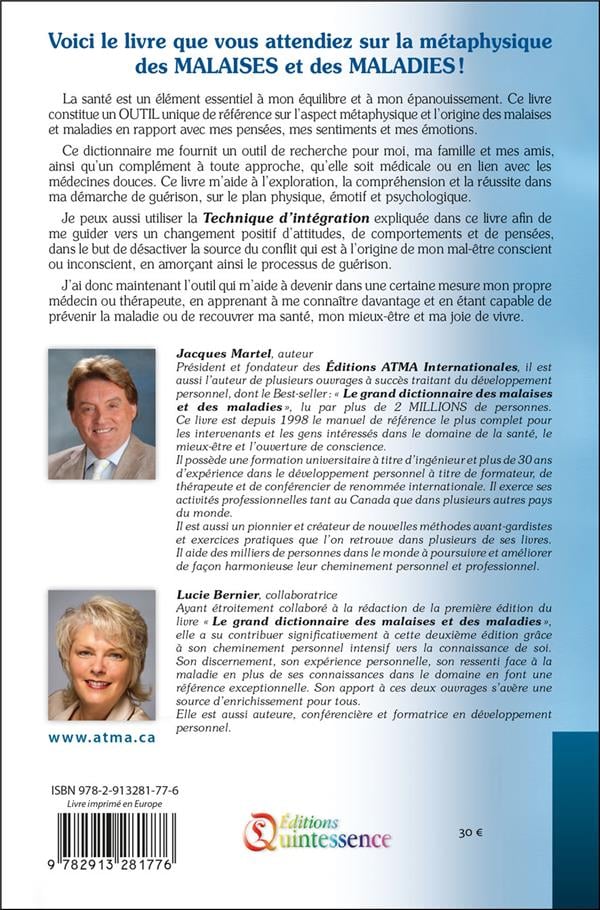 Le grand dictionnaire des malaises et des maladies (nouvelle édition) - Pour la guérison de l'Âme et des Émotions - Jacques Martel, Lucie Bernier (EAN13 : 9782358052856) | Editions Quintessence. Accueil. Toutes les publications. Le grand dictionnaire des malaises et des maladies (nouvelle édition) Pour la guérison de l'Âme et des Émotions.