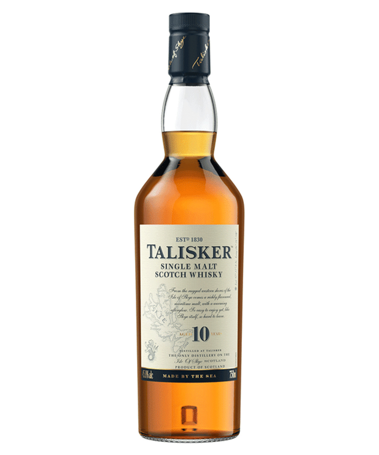 More about Talisker 10 Year Old. Intense and full-bodied, this 10 Year Old Single Malt Scotch Whisky has a strong smoke, barley-malt taste and rich, dried-fruit sweetness. Distilled by the sea on the shores of the Isle of Skye in Scotland, centuries of local distilling tradition and the rugged environment are what make this whisky so unique.