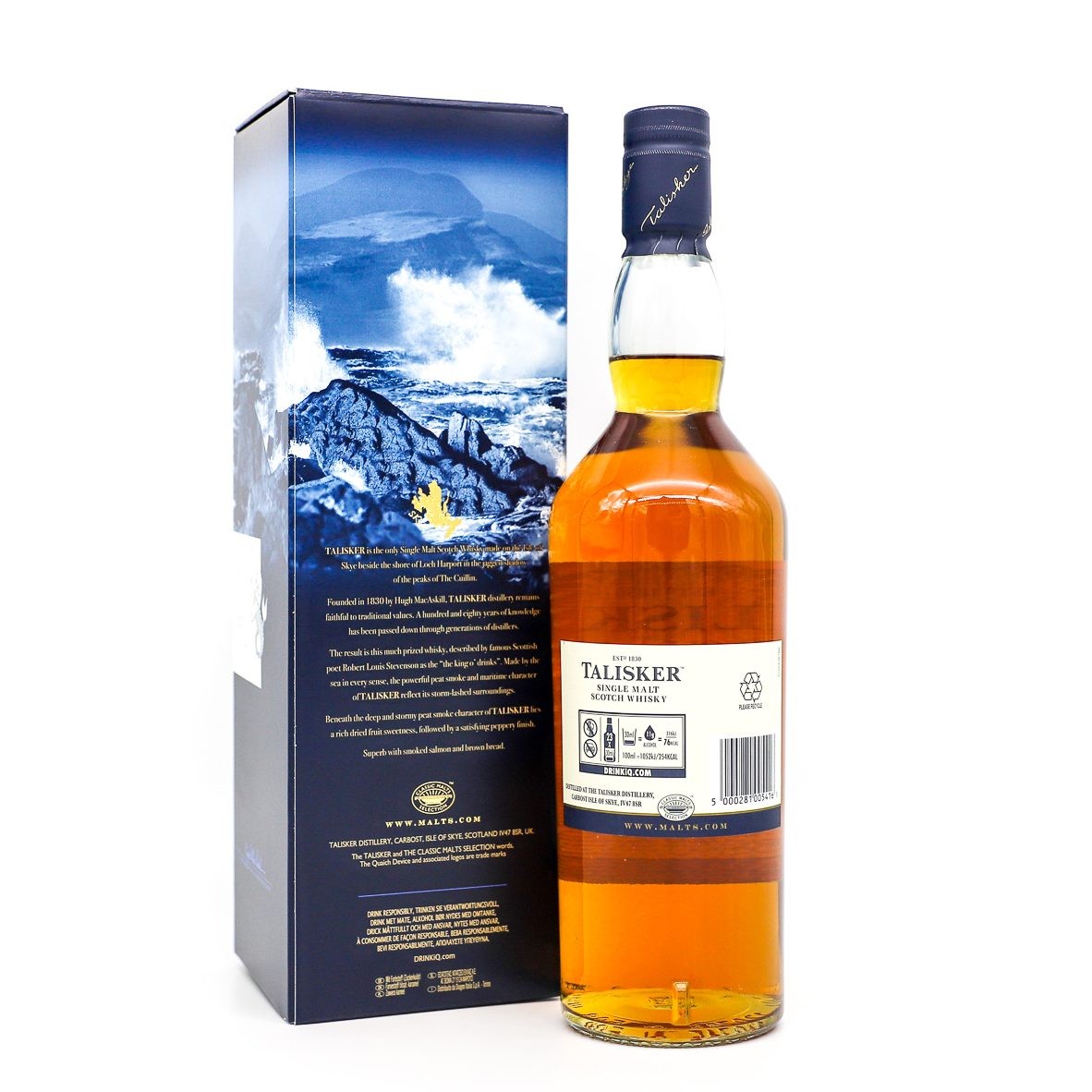 Produced at the oldest distillery on the Isle of Skye, Talisker Single Malt Scotch Whisky has been made by the sea since 1830, TALISKER Single Malt Scotch Whisky has been "Made By the Sea" since 1830. In fact, few single malts tell the story of their origin better. Its smell and taste instantly connect the drinker with the rugged coastal environment. Every sip is a taste of the Isle of.